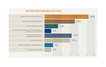 En el ámbito laboral, solo el 26% de los cubanos trabaja a tiempo completo y un 18% lo hace a tiempo parcial. Entre los jóvenes de 18 a 30 años, el trabajo a tiempo parcial alcanza el 28%, pero solo el 22% estudia y casi el 20% ni estudia ni trabaja. El desempleo se mantiene en el 12%, cifra similar a la de 2024, y un 14% de los mayores de 70 años sigue trabajando tras jubilarse debido a la insuficiencia de las pensiones. El 81% de los jóvenes desempleados lleva más de un año sin trabajo, y el 32% de los desempleados en general ha estado en esa situación por más de tres años.